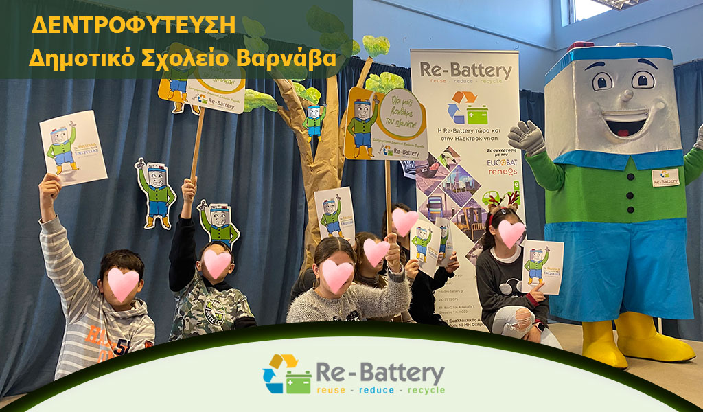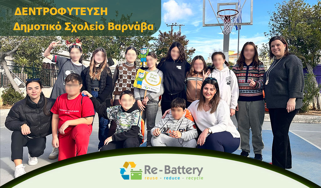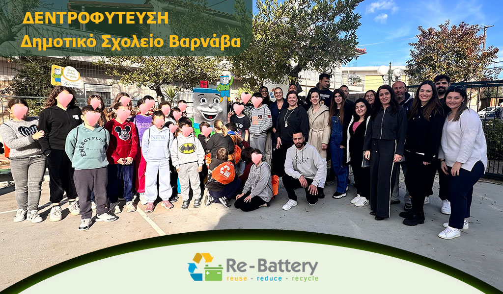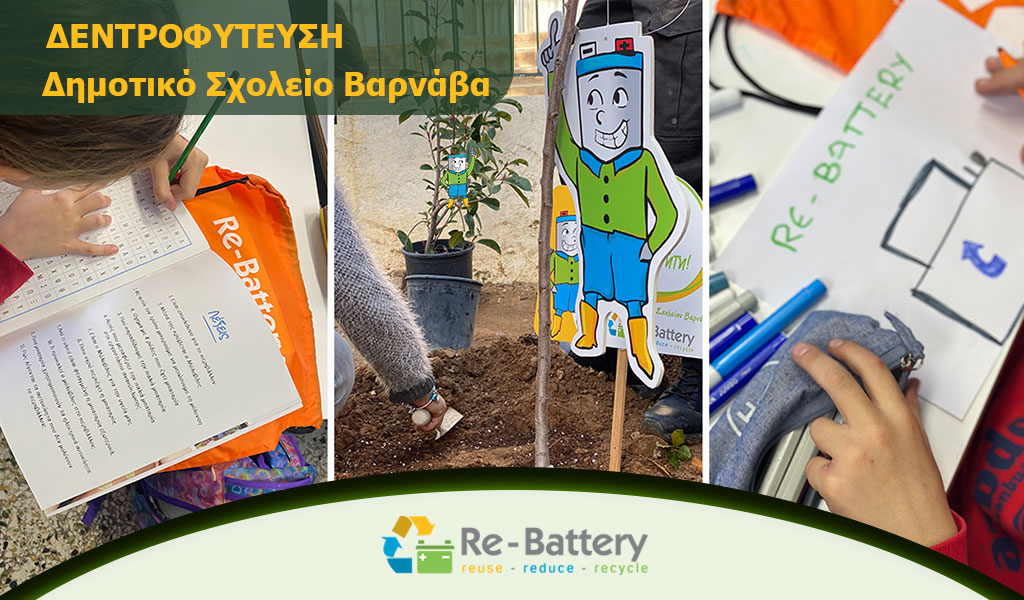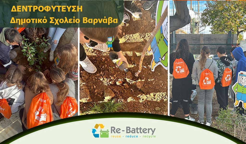 Η ομάδα της Re-Battery επισκέφθηκε το Δημοτικό Σχολείο Βαρνάβα και ενημέρωσε τους 60 μικρούς μας φίλους για την ανακύκλωση μπαταριών οχημάτων και βιομηχανίας. Οι μαθητές συμμετείχαν ενεργά τόσο στην παρουσίαση όσο και στη δράση της δενδροφύτευσης που ακολούθησε στην αυλή του σχολείου. 60 οπωροφόρα και καλλωπιστικά δεντρύλλια φυτεύτηκαν με Δωρεά της Re-Battery με σκοπό να ενισχυθεί η εικόνα του πράσινου σε μια περιοχή που επλήγη ιδιαίτερα από τις πυρκαγιές το καλοκαίρι που μας πέρασε.
