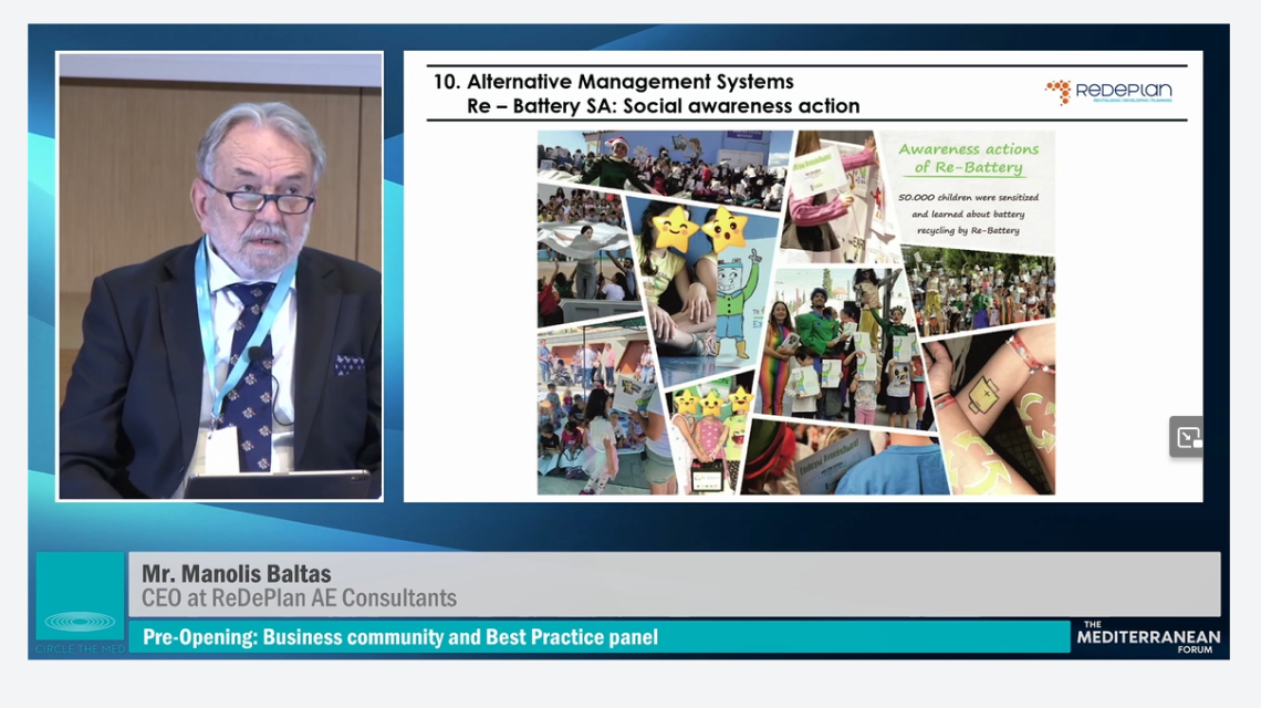Ο CEO της ReDePlan Consultants, κος Μανώλης Μπαλτάς, είχε την ευκαιρία και την τιμή να μοιραστεί σκέψεις και εμπειρίες σχετικά με τις βέλτιστες πρακτικές για την Κυκλική Οικονομία στην Ελλάδα. Μεταξύ άλλων παρουσίασε και την λειτουργία και θεαματική ανάπτυξη της Re-Battery και επεσήμανε τη σημαντική συμβολή της στην Εναλλακτική Διαχείριση των επικινδύνων αποβλήτων συσσωρευτών μολύβδου & ιόντων λιθίου. Η ReDePlan ως σύμβουλος στρατηγικής ανάπτυξης του ΣΣΕΔ από το 2011 έχει συμβάλει καθοριστικά στην ορθή λειτουργία του Συστήματος που έχει κερδίσει την εμπιστοσύνη του 85% των υπόχρεων παραγωγών της χώρα και το 100% των εταιριών που εισάγουν την ηλεκτροκίνηση στην χώρα μας.