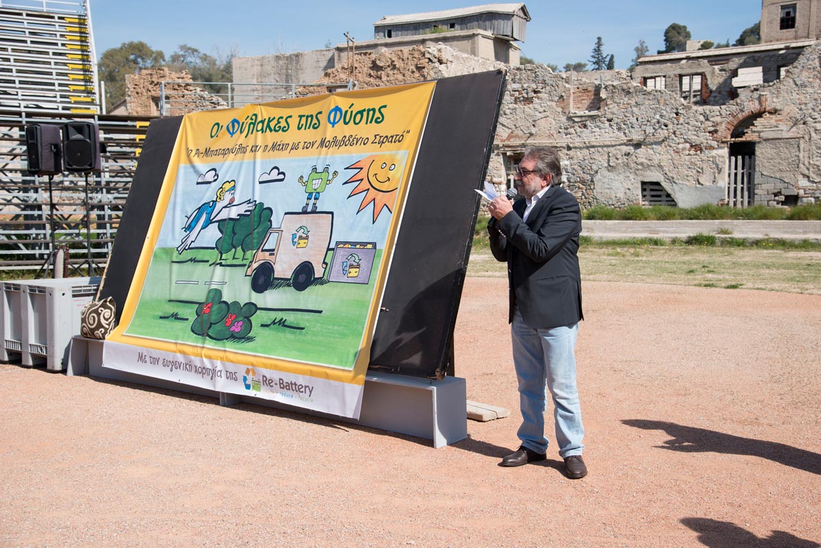 Ο κ. Δ. Πολιτόπουλος, Πρόεδρος του ΕΟΑΝ που εκπροσώπησε τον Οργανισμό και το Υπουργείο Περιβάλλοντος και Ενέργειας, στην παρέμβαση του κατά την απονομή των βραβείων συνεχάρη την Re-Battery για την εύστοχη πρωτοβουλία της και απευθυνόμενος στα παιδιά αλλά και στους γονείς ζήτησε την ενεργοποίηση όλων μας για την προστασία του περιβάλλοντος από το επικίνδυνο απόβλητο του μολύβδου.