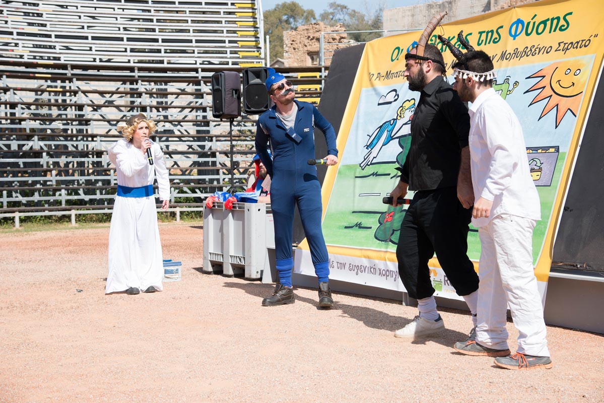 Ειδικότερα, μέσα σε μια ατμόσφαιρα κεφιού και χαράς, με εκατοντάδες παιδάκια να ζωγραφίζουν τον «Ρι-Μπαταρούλη», το νέο ήρωα του ομώνυμου παραμυθιού και να «εκπαιδεύονται» στην ανακύκλωση της μπαταρίας, έγινε η πρεμιέρα της θεατρικής παράστασης «Ο Ρι-Μπαταρούλης και η Μάχη με το Μολυβδένιο Στρατό» που συμπαρέσυρε γονείς και παιδιά σε ένα όμορφο, τρυφερό και χαρούμενο συμμετοχικό θεατρικό παιχνίδι με την βοήθεια της εκπαιδευτικής θεατρικής ομάδας «εν οδώ».