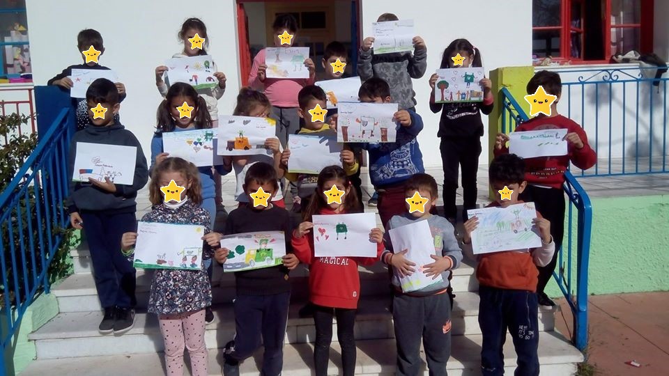Στο τέλος του μαθήματος, παρατεταγμένα στην σκάλα μπροστά από την είσοδο του σχολείου τους, με χαμόγελα και περηφάνια, τα παιδιά σηκώνουν ψηλά και δείχνουν τις εργασίες τους. Αφηγούνται με σχήματα και χρώματα τους κινδύνους από την ρύπανση των μπαταριών μολύβδου οξέος και ταυτοχρόνως καταγράφουν τη δική τους πρόταση και απόφαση για την ανακύκλωση και το καθαρό περιβάλλον, βάζοντας να κυριαρχεί στις ζωγραφιές τους ο λαμπερός ήλιος, ο γαλάζιος ουρανός και το πράσινο της φύσης.