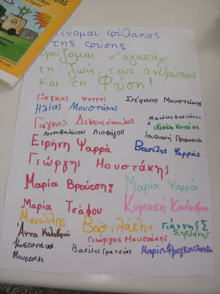 Συζητήσαμε, ζωγραφίσαμε, συνθέσαμε ποίημα, φτιάξαμε κομικς σχετικά και ορκιστήκαμε να γίνουμε φύλακες της φύσης μαζί με τον Ρι-Μπαταρούλη και την παρέα του.
