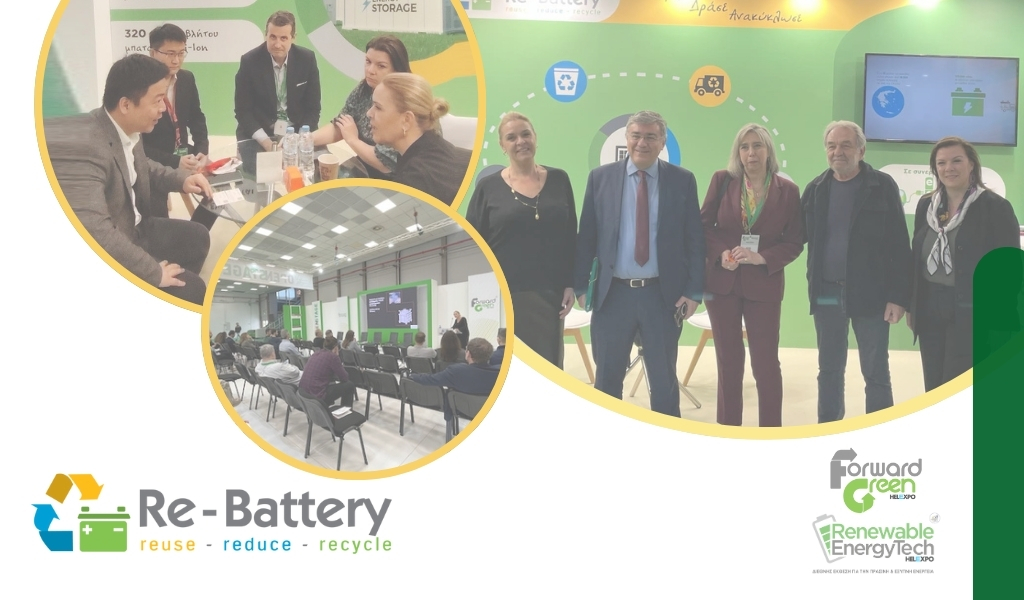 Με μεγάλη επιτυχία ολοκληρώθηκε η συμμετοχή της Re-Battery Α.Ε. στη φετινή έκθεση Renewable EnergyTech και Forward Green EXPO στη ΔΕΘ HELEXPO Θεσσαλονίκης. Η τριήμερη διοργάνωση αποτέλεσε ένα σημείο συνάντησης για φορείς, επιχειρήσεις και επαγγελματίες που δραστηριοποιούνται στην πράσινη ενέργεια και τη βιώσιμη ανάπτυξη.