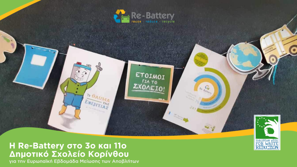 H Re-Battery ανταποκρινόμενη στο κάλεσμα του Ελληνικού Οργανισμού Ανακύκλωσης (ΕΟΑΝ), για την συμμετοχή στην Ευρωπαϊκή Εβδομάδα Μείωσης Αποβλήτων 18 – 26 Νοεμβρίου- #EWWR 2023, τη μεγαλύτερη Ευρωπαϊκή καμπάνια για την Ανακύκλωση, διοργάνωσε δράσεις ευαισθητοποίησης στους μαθητές Δημοτικών Σχολείων της Κορίνθου.