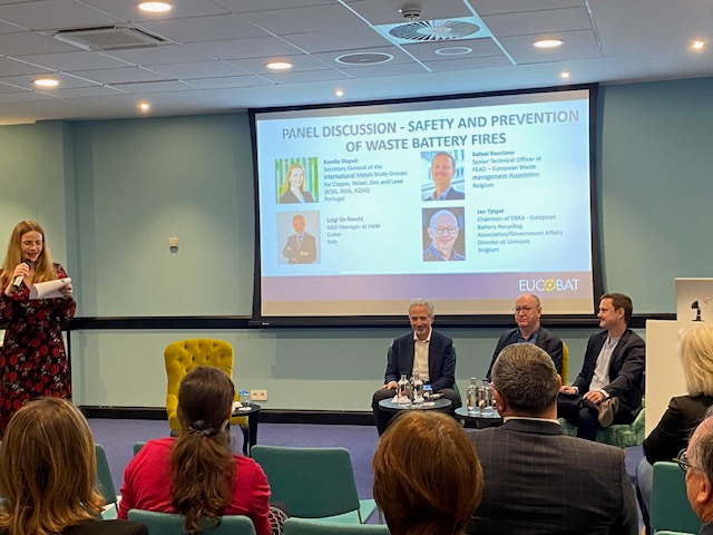 Ιδιαίτερα ενδιαφέρουσα ήταν η συζήτηση στο panel σχετικά με την ασφάλεια και την πρόληψη πυρκαγιών από μπαταρίες, με τη συμμετοχή των Luigi De Rocchi (Haiki Cobat), Rafael Basciano (FEAD) και Jan Tytgat (Umicore/EBRA), υπό τον συντονισμό της Kamila Slupek (International Metals Study Groups), όπου αναδείχθηκαν κρίσιμες προκλήσεις και λύσεις σε όλη την αλυσίδα διαχείρισης αποβλήτων μπαταριών.