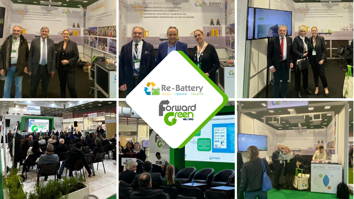 Η Re-Battery, συμμετείχε για δεύτερη συνεχόμενη χρονιά, στη Διεθνή Έκθεση Κυκλικής Οικονομίας Forward Green Expo, η οποία πραγματοποιήθηκε 7 – 9 Μαρτίου 2024 στο Διεθνές Εκθεσιακό Κέντρο Θεσσαλονίκης, υπό την αιγίδα της ΔΕΘ-HELEXPO.