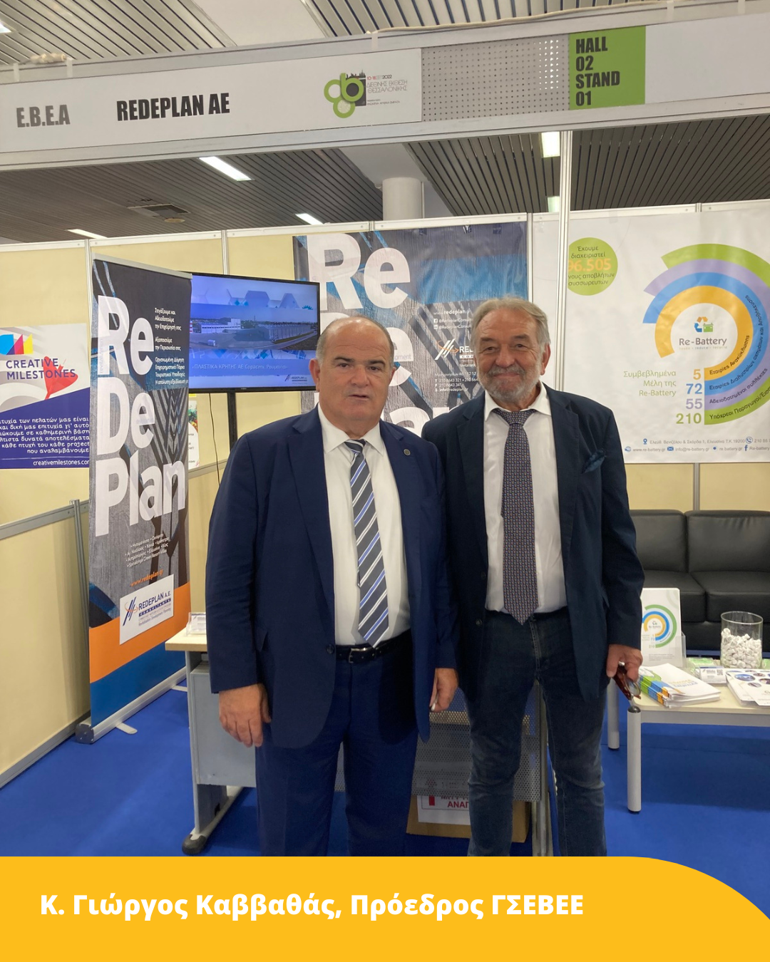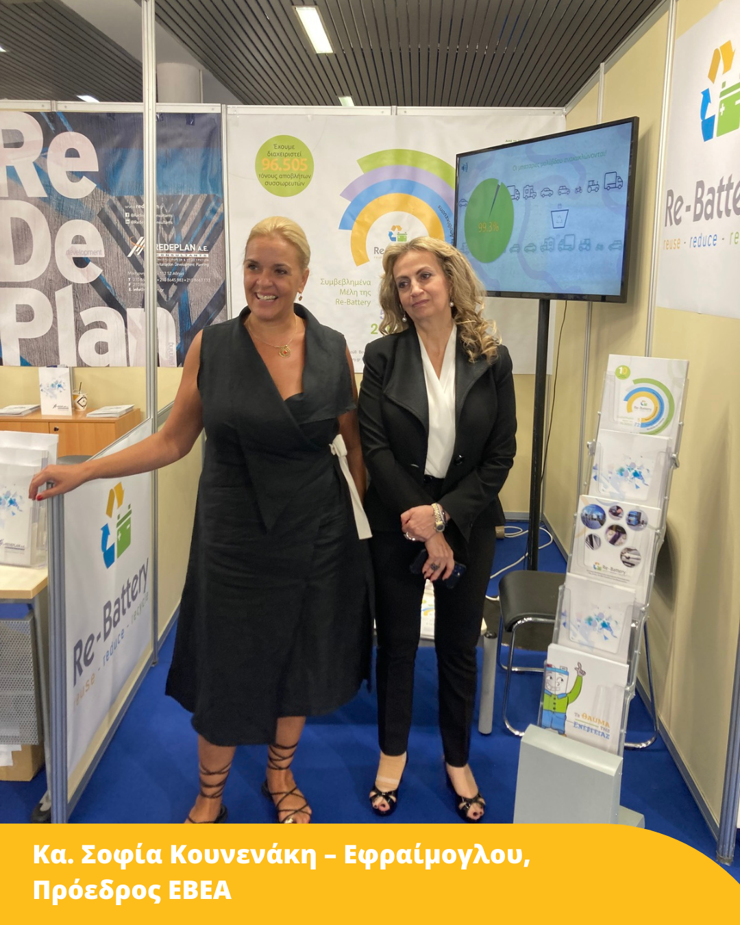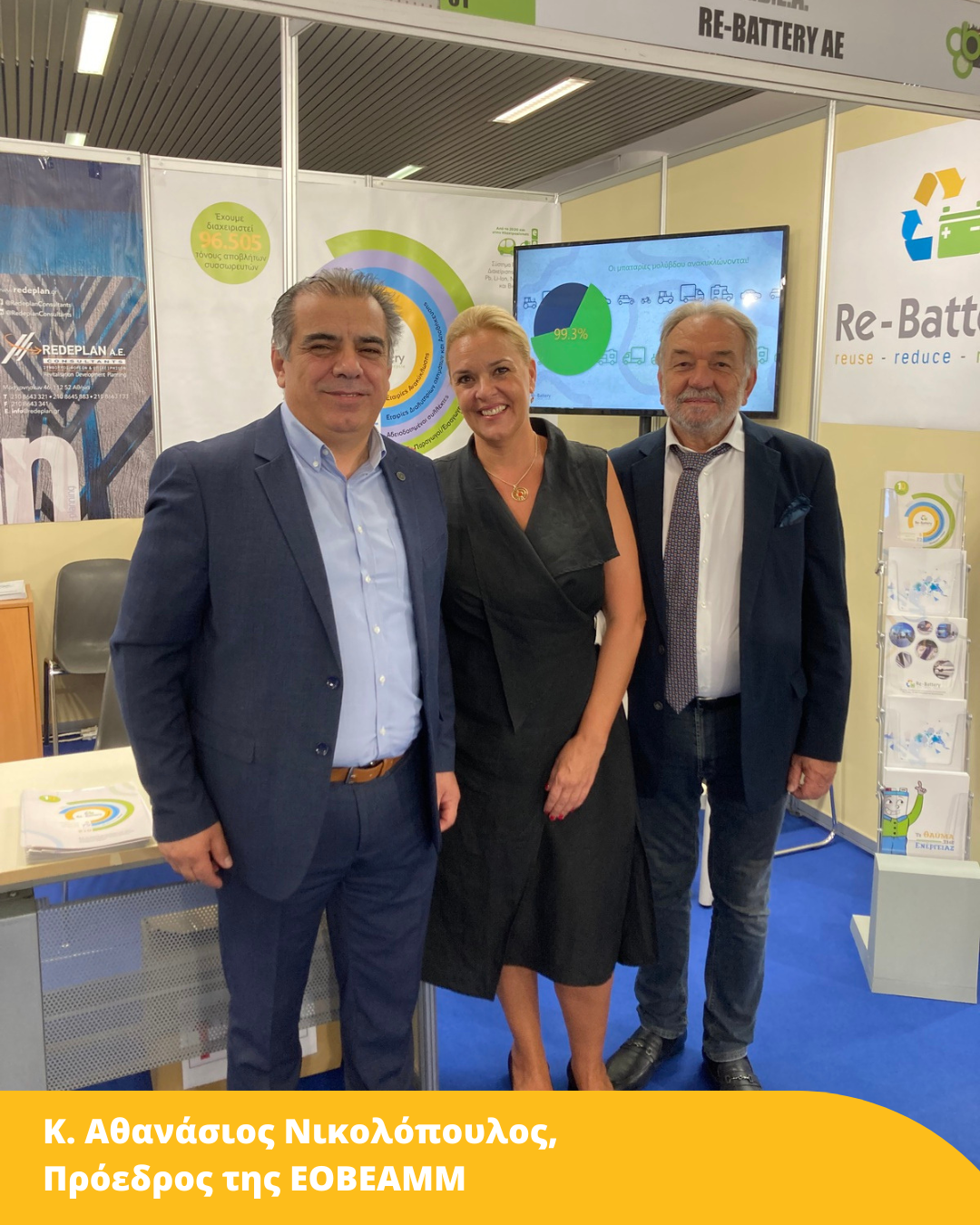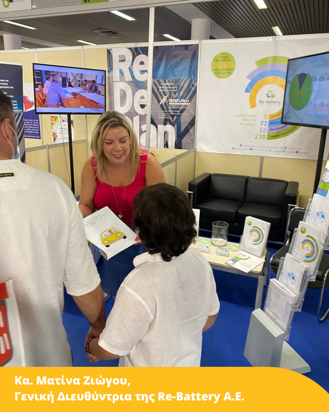 Ενώ την εταιρική μας παρουσίαση εκπροσώπησαν: ο κ. Μανώλης Μπαλτάς Διευθύνων Σύμβουλος Re.De – Plan A.E., η κα Σοφία Χούμα Ειδικός Σύμβουλος Συστημάτων Εναλλακτικής Διαχείρισης Re.De – Plan A.E., καθώς και η Γενική Διευθύντρια της Re-Battery A.E. κα Ματίνα Ζιώγου.