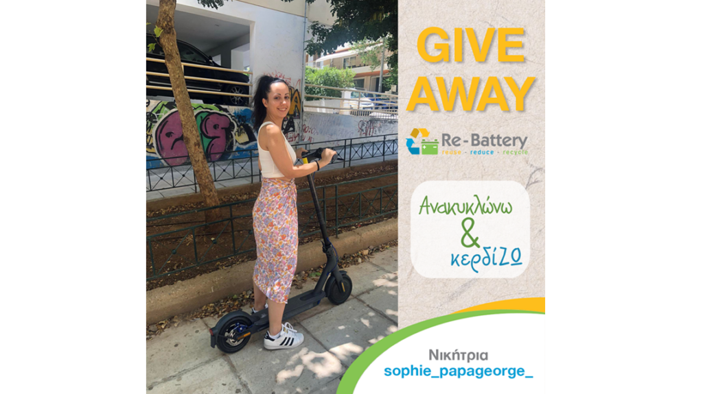 Η Re-Battery παρέδωσε στην νικήτρια του διαγωνισμού Ανακυκλώνω και ΚερδίΖω τη δωροεπιταγή αξίας 300€ για την αγορά ενός ηλεκτρικού πατινιού της επιλογής της!