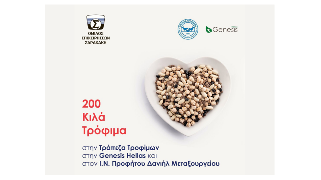 Ο όμιλος επιχειρήσεων Σαρακάκη δωρίζει 200 κιλά τροφίμων στην Τράπεζα Τροφίμων, στην Genesis Hellas και στον Ι.Ν. Προφήτου Δανιήλ Μεταξουργείου
