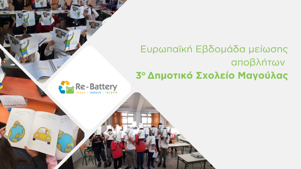 Στο πλαίσιο της Ευρωπαϊκής Εβδομάδας Μείωσης Αποβλήτων η Re-Battery πραγματοποίησε δράση ενημέρωσης και ευαισθητοποίησης της μαθητικής κοινότητας.
